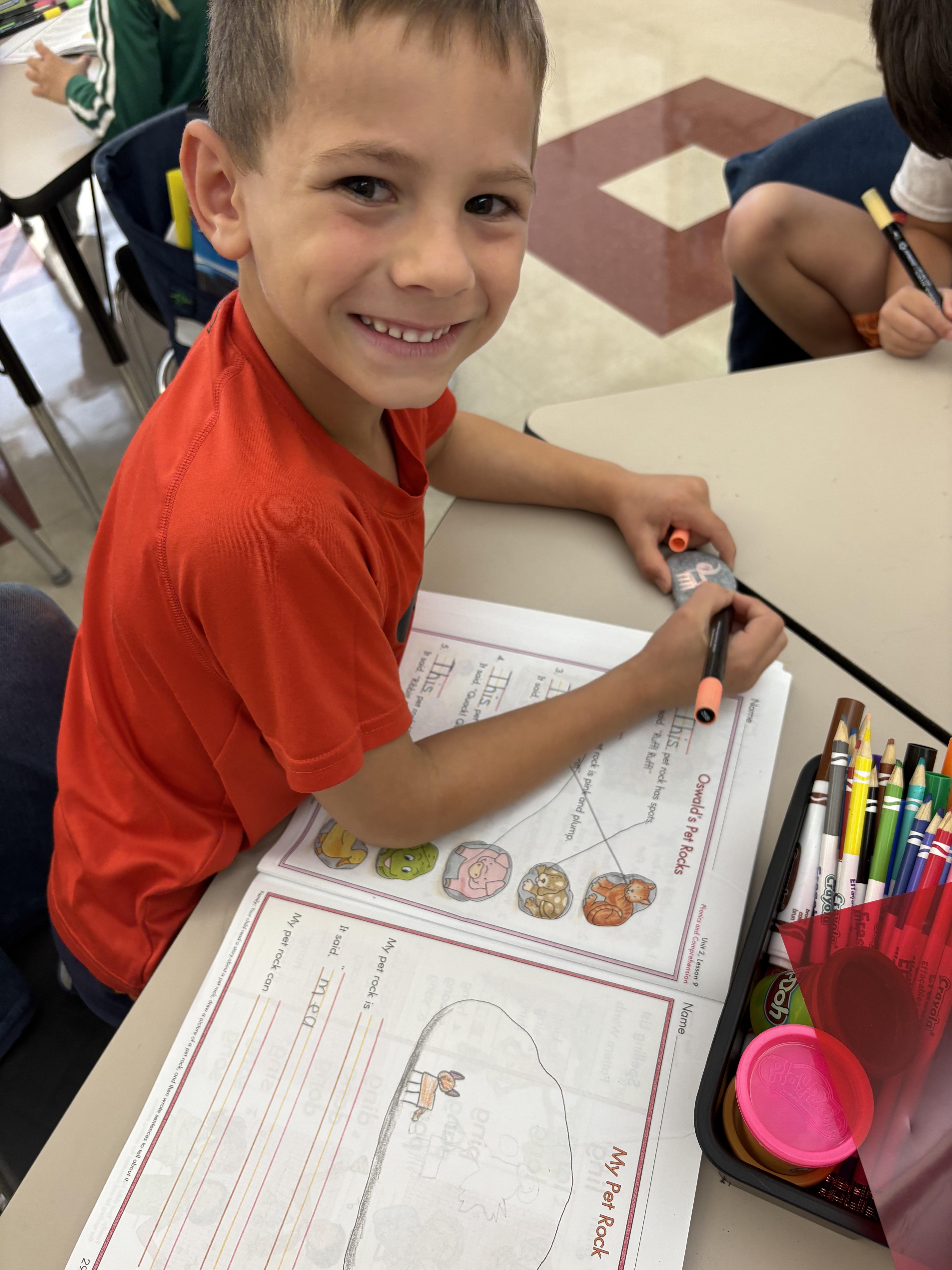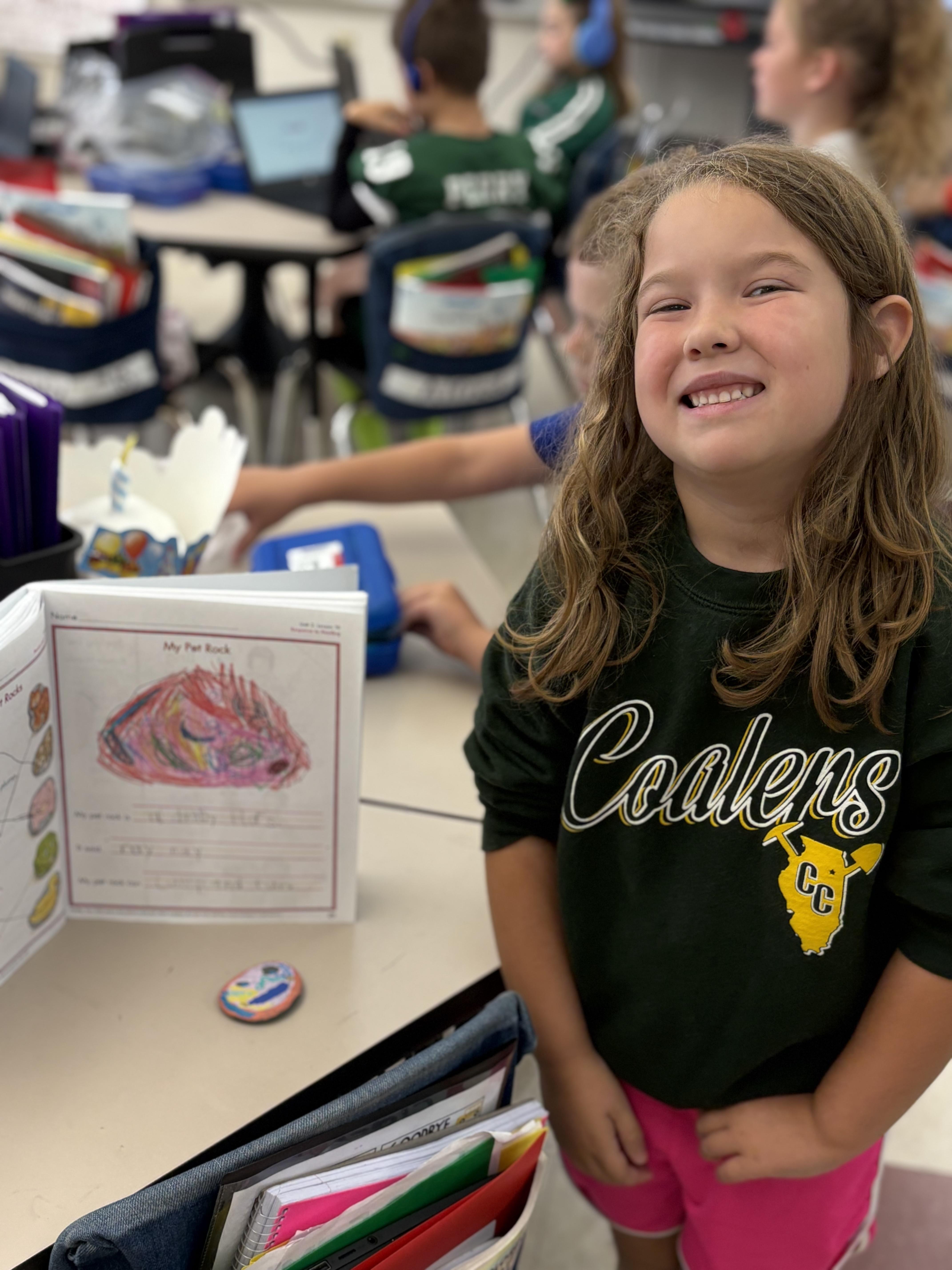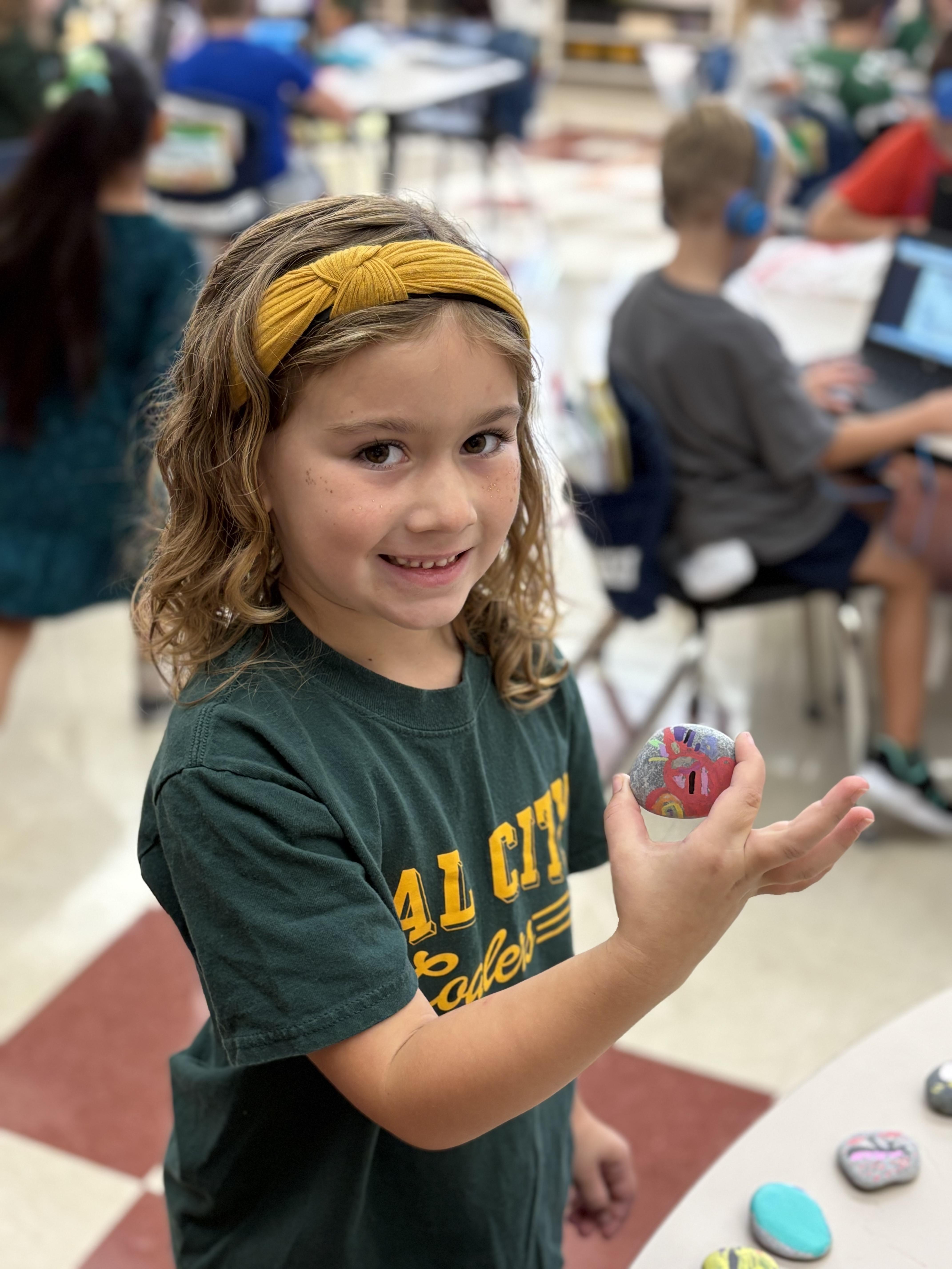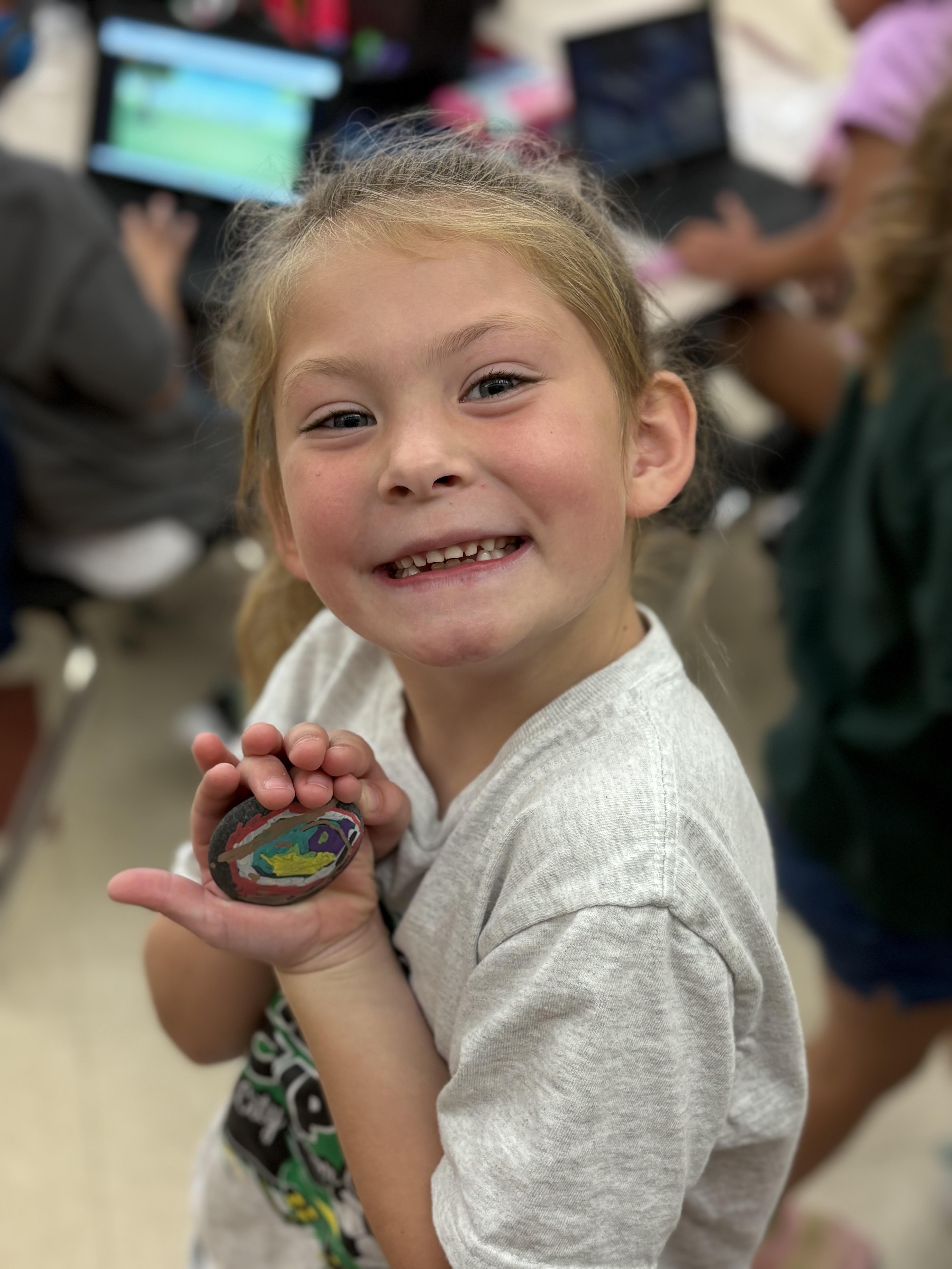 Mrs. Strunga’s first graders were ROCK STARS as they made connections to their Superkids reading. After reading all week about Oswald’s Odd Pet Rock, they designed their own pet rocks, gave their rocks a name, dialogue, and even described what their pet rock could do. After creating the blueprint, students were able to paint their own pet rock. Mrs. Strunga said, “students had an amazing time designing and creating.”