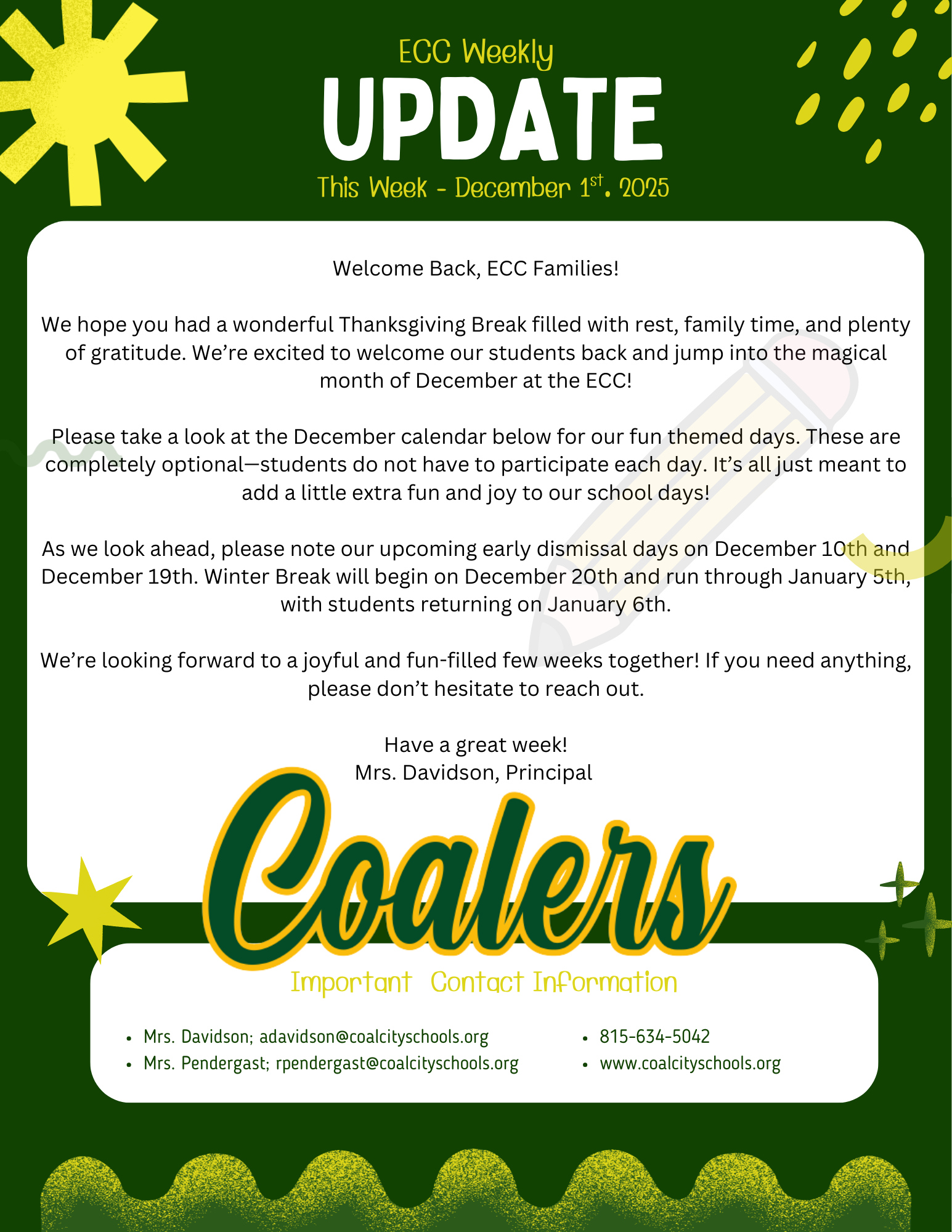 Did you know Coal City Unit District #1 has an app? Make sure you download to your phone or electronic device for easy access to all information regarding not just the ECC, but all Coal City schools. You can pick and choose which schools to follow and will be the primary source of sharing information to families!